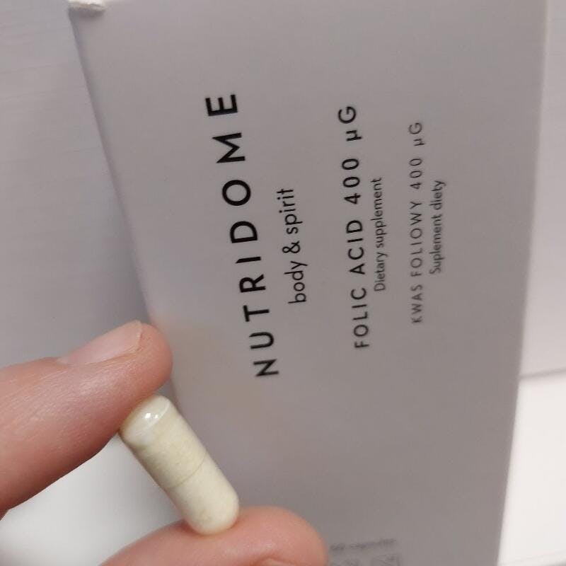 L'acide folique , aussi appelé vitamine B9 , est un ingrédient essentiel au bon fonctionnement de l'organisme, notamment pendant la grossesse . Le complément alimentaire Nutridome apporte 800 µg d'acide folique par dose quotidienne (400 µg par capsule) , pour un soutien optimal. L'acide folique favorise la croissance des tissus maternels pendant la grossesse, la production sanguine et la synthèse des acides aminés , essentiels à la division cellulaire .