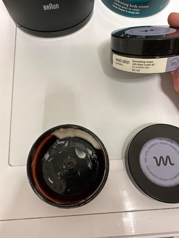 La crème normalisante Mel Skin pour peaux à problèmes à l'huile de cumin noir est composée principalement d'ingrédients d'origine végétale . Leurs propriétés cicatrisantes apaisent l'acné, l'eczéma et l'hyperpigmentation . Le produit pénètre parfaitement dans la peau, l'hydratant intensément et la raffermissant. Il détend également la peau , procurant une sensation de confort qui dure jusqu'à 12 heures . Cette crème est recommandée pour les peaux mixtes, grasses et à imperfections .
