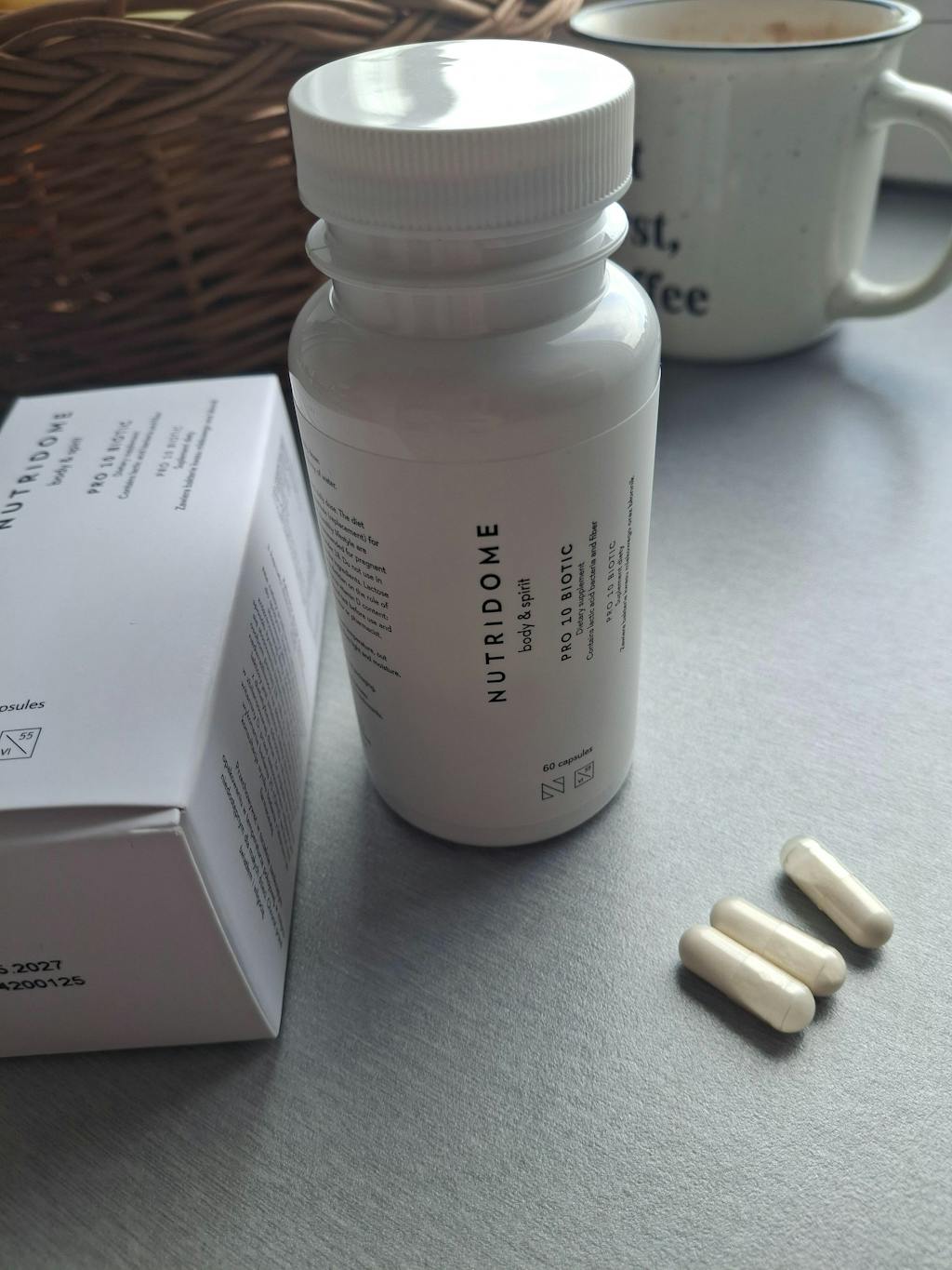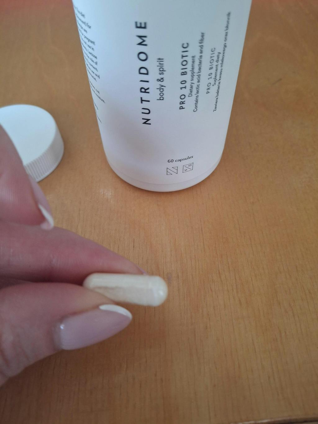 Nutridome probiotica vult de voeding aan met melkzuurbacteriën en vezels uit acacia . Een dagelijkse portie bevat in totaal 10 miljard kolonievormende eenheden bacteriën, waaronder Lactobacillus- en Bifidobacterium-stammen met wetenschappelijk bewezen effectiviteit. Nutridome PRO 10 BIOTIC voedingssupplement bestaat uit ingrediënten die nodig zijn voor een goede werking van het lichaam, die de gezondheid van de darmen bevorderen en zorgen voor een goede conditie van de huid. Vitamine B12 en foliumzuur spelen een rol in het celdelingsproces (inclusief huidcellen). Daarnaast helpt folaat bij de juiste synthese van aminozuren. Lactase verbetert de lactosevertering bij mensen die lactose moeilijk verteren. Vitamine B6 draagt bij aan de regulering van de hormonale activiteit.