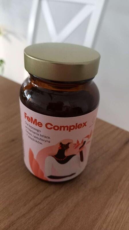 Het voedingssupplement FeMe Complex bevat ijzer in chelaatvorm en vitamine B12 , die bijdragen aan de juiste productie van rode bloedcellen en gevoelens van vermoeidheid en moeheid verminderen , vitamine C , dat de opname van ijzer verhoogt , foliumzuur , dat bijdraagt aan de juiste productie van bloed , en lactoferrine , zink, myo-inositol en gestandaardiseerde extracten van brandnetel en biet.